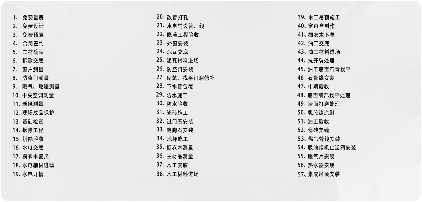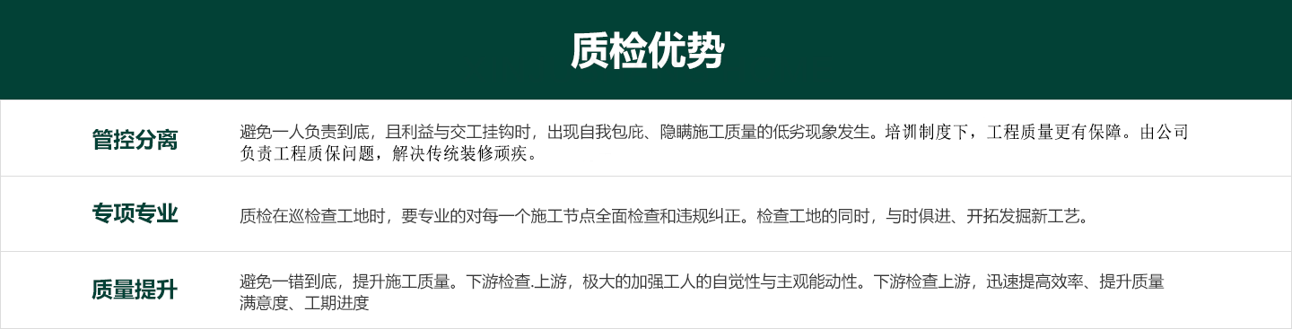 项目管家根据每一阶段的施工节点,进行项目管家自检。项目管家以工期、材料的节点控制表来核实材料、工期节点的把控;作为全流程的工程协调者,必须检查施工安装是否合格,如果不合格立即提出整改意见。