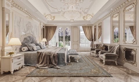 石膏装饰:石膏装饰可以为天花板增添独特的纹理和图案,用于营造豪华的氛围。